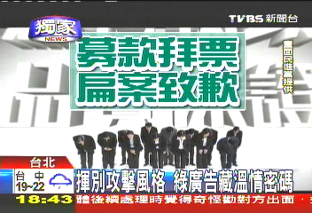 民进党3支广告里都有密码,第一波擦亮招牌,最经典的鞠躬画面,代表诚意募款,更隐含着对风风雨雨的扁案,那没说出口的歉意。蔡英文在广告中表示:“我们经常被问,民进党的理想性是否仍在?”