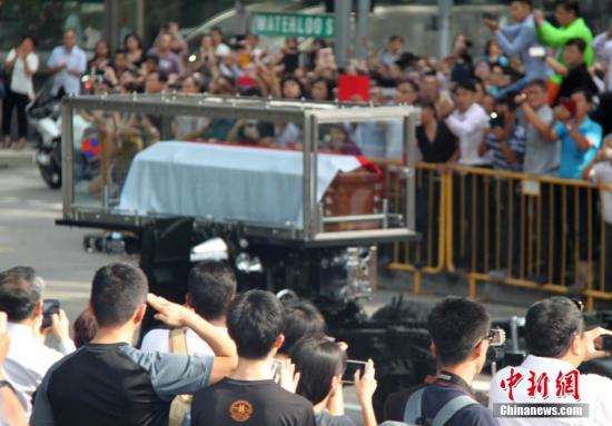 3月25日,新加坡前总理李光耀的灵柩移往新加坡国会大厦,数以千计民众夹道送别。中新社发 李洋 摄