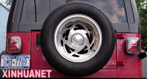 这是9月13日在美国纽约街头的一辆吉普车上拍摄的一个美国产固铂轮胎。当天记者在纽约走了几个街区,路边停放的轿车的轮胎绝大部分都是美国产的,只有很少的几辆车的轮胎是中国制造。美国当地时间9月11日,奥巴马决定对从中国进口的所有小轿车和轻型卡车轮胎征收为期3年的惩罚性关税,即在3.4%-4%的原有关税基础上,今后三年分别加征35%、30%和25%的附加关税。这一特保措施将于9月26日正式生效。然而,美国轮胎市场可以划分为高、中、低三档,中国产品主要供应中、低端市场,而美国内生产的同类产品主要供应高端市场。中国出口到美国的轮胎主要供应美国的维修市场,而美国的自产轮胎主要供应原配市场和替代市场,两者并不存在直接的竞争关系。 新华社记者刘欣摄