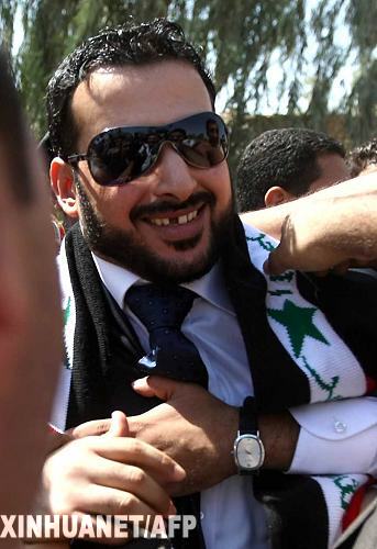 9月15日,获释的伊拉克记者蒙塔兹·扎伊迪抵达位于首都巴格达的一家电视台。去年12月14日在新闻发布会上向美国前总统布什扔鞋抗议的伊拉克记者蒙塔兹·扎伊迪于当天获释。新华社/法新