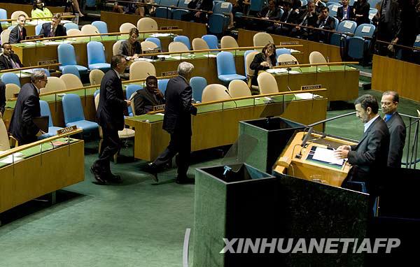 美国、法国、德国等国代表在艾哈迈迪—内贾德讲话时离席表示抗议。