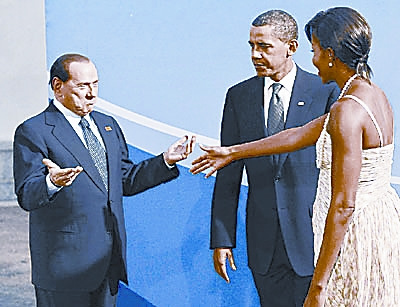 如果说当晚奥巴马夫人米歇尔对所有来宾都只行握手礼,这倒也就罢了——然而眼尖的媒体注意到,当米歇尔在迎接英国首相布朗和法国总统萨科齐时都能大方地与对方行拥抱礼,而且她甚至让布朗亲吻了面颊,唯独对贝卢斯科尼例外!
