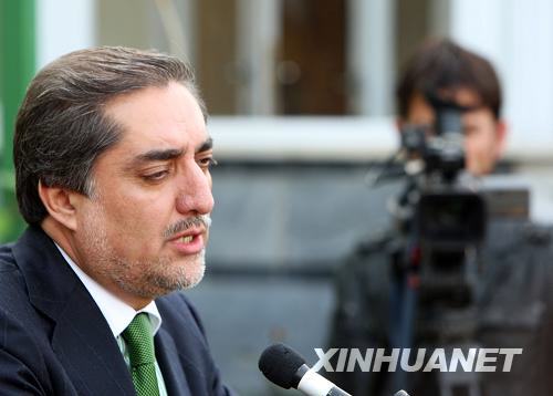 11月1日,阿富汗总统选举的两名候选人之一阿卜杜拉在喀布尔的官邸举行记者招待会。当天,阿卜杜拉宣布,由于选举公正性毫无保障,他将不参加定于7日举行的总统选举第二轮投票。新华社发(扎比摄)