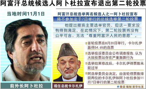 图表:阿富汗总统候选人阿卜杜拉宣布退出第二轮投票新华社发