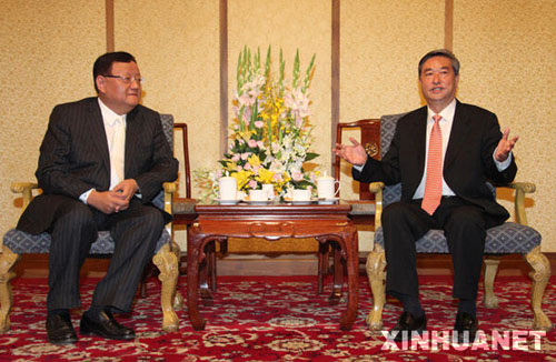 10月8日,新华社社长李从军(右)在北京会见前来参加世界媒体峰会的凤凰卫视董事局主席兼行政总裁刘长乐。新华社记者 邢广利 摄