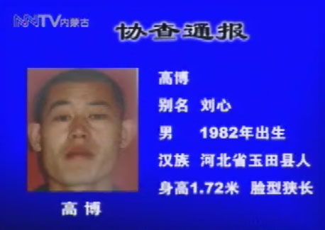 姓名:董佳继 男 1982年出生 汉族 内蒙古商都人 身高1.75米 方形脸 山西大同口音 姓名:高博 别名:刘心 男 汉族 1982年出生 河北省玉田县人 身高1.72米 脸型狭长 姓名:李洪斌 别名:李志平 男 蒙古族 1988年出生 辽宁省阜新县人 小学文化 呼和浩特市北垣街 浪中浪洗浴城服务员 身高1.73米 长方脸 东北口音