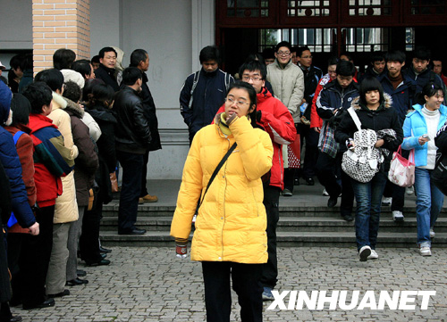 2009年1月2日,考生在考试结束后走出考场。元旦期间,北京大学、清华大学、上海交通大学、复旦大学、同济大学等名校在上海举行自主招生考试,来自上海各中学的众多学生参加考试。 新华社记者 陈飞 摄