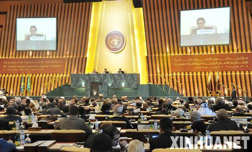 《联合国反腐败公约》第三次缔约国会议在卡塔尔开幕。11月9日,与会者在卡塔尔首都多哈参加《联合国反腐败公约》第三次缔约国会议。为期5天的《联合国反腐败公约》第三次缔约国会议9日在卡塔尔首都多哈开幕,来自公约缔约国、签署国及多个联合国专门机构和非政府组织的代表约1000人出席会议。 本届会议将就建立一个审议各国履行《联合国反腐败公约》情况的机制进行讨论。同时,与会代表还将就如何追回被腐败分子带到境外的资产等问题进行探讨。新华社记者杜健摄
