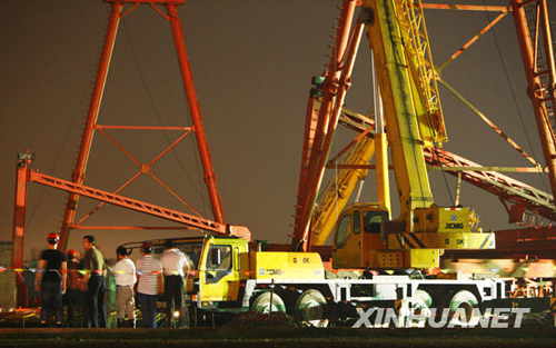 新华网上海8月19日电(记者刘丹、贾远琨)19日17时58分,位于上海市嘉定区京沪高铁六标十工区的一个10吨的龙门塔吊倒塌,造成4名工人死亡,2名工人受伤。