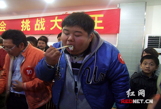 今日中午,挑战“中国大胃王”比赛在长沙举行,最终长沙16岁少年彭诗亮以15分钟吃下92个饺子的成绩获得冠军,将“中国大胃王”潘一中拉下王位。