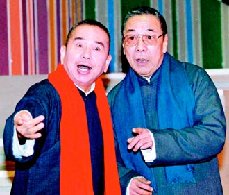 吴兆南(左)和魏龙豪搭档的相声,在魏龙豪过世后已成绝响。(《联合报》图)