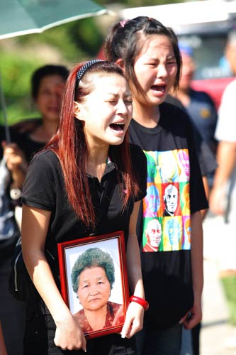 家属抱着遗照,哭喊亲人名字。(图:“中央社”)