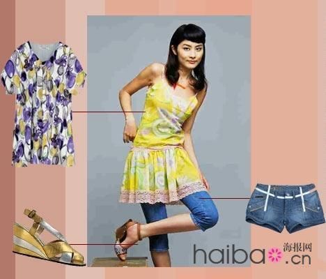 搭配重点:雪纺长衫能遮盖臀部的不足,小热裤能展现完美腿部线条,搭配度假风十足的坡跟鞋,立刻让腿部的不足瞬间隐形。