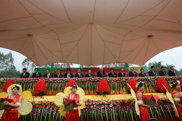 18上午,全国政协副主席罗豪才、张克辉,中国国民党副主席林丰正,国家有关部委领导及福建省领导卢展工、黄小晶、梁绮萍、王三运、张家坤等共同启动按钮,宣布第九届海峡两岸(福建漳州)花卉博览会暨农业合作洽谈会开幕。