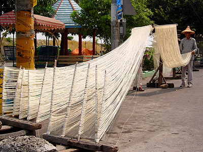 纯手工面线在台湾已逐渐失传,如今东港镇内仅存博爱路上的两间制作工厂,到这里参观可以体验古人留下的智慧。