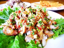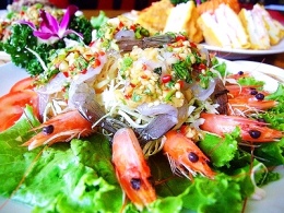 月亮虾饼是著名的泰式料理招牌菜,但店内则是使用了特调的酸甜沾酱,让虾饼的鲜味更完整的呈现,也广受游客的喜爱。