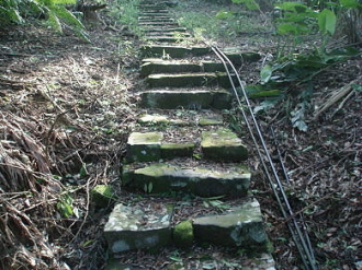 一路都是朴拙的石阶旧路,林荫潮湿处,石阶多青苔,得谨慎踏踩,以免失足。串空湖产业道路辟建后,这条古道失去交通运输的功能,只剩登山客行走而已,没有改建或整修的必要,因此保存能够保存昔日的旧貌。