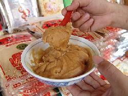 面茶是用猪油、红葱头新鲜拌炒,打开袋子,光闻面粉就觉得香喷喷,加水搅拌就是黏稠的面茶,可依个人喜好控制黏稠度,也可以加油条或是碰饼(泡饼)的吃法,尤其冬天来上一碗热腾腾的面茶,又香又暖胃,而杏仁茶则是用南杏磨制的,味道不会太甜,香醇可口。林老板说,他们是淡水老街第一个卖面茶的店,坚持面茶、杏仁粉内不加香料,保持食材的原味,对于顾客健康也有保障。(大台湾旅游网 摄影/郭嘉琳)
