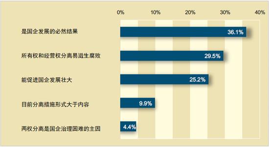 中青舆情监测室随机抽样分析了2000条网民言论,发现36.1%的网民认为国企所有权与经营权的分离是国企发展的必然结果。