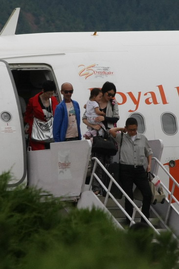 王菲李亚鹏夫妇抵达不丹 抱小女儿李嫣下飞机
