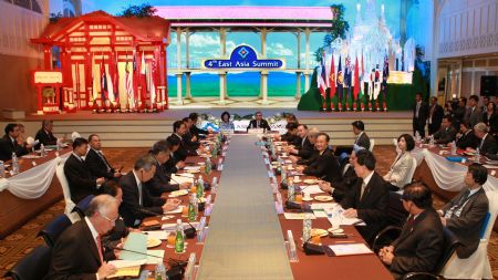Leaders attend the 4th East Asia Summit (EAS) in the southern Thai resort town of Hua Hin, Oct. 25, 2009. The 4th East Asia Summit (EAS) opened here on Sunday, where ASEAN (Association of Southeast Asian Nations) leaders and their counterparts from China, Japan, South Korea, India, Australia, and New Zealand met to discuss regional cooperation topics.(Xinhua/Pang Xinglei)