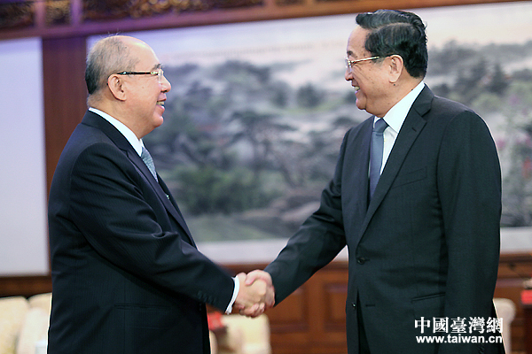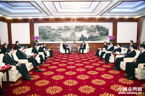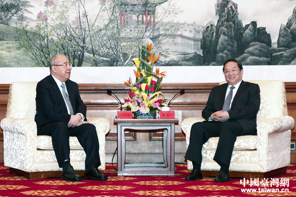 6月13日下午,中共中央政治局常委、全国政协主席俞正声在北京钓鱼台国宾馆会见中国国民党荣誉主席吴伯雄率领的国民党大陆访问团一行。(中国台湾网 何建峰 摄)