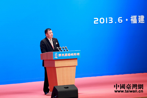 台湾青年创业总会理事长许旭辉在今日举行的第五届海峡论坛大会上以青创会给年轻人的鼓励与希望的六个字“敢梦、筑梦、圆梦”来呼应习近平总书记提出的“中国梦”,期待两岸青年共同“筑梦、圆梦”。(中国台湾网 普燕 摄)