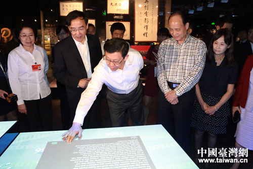 20日下午,海协会会长陈德铭夫妇与海基会董事长林中森夫妇一起在沪参观了上海电影博物馆与东方明珠。他们在参观中尝试电影配音、体验摄影棚录像,并详细了解了上海的历史发展。(中国台湾网 王伟 摄)