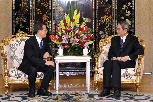国务院台湾事务办公室主任张志军30日下午在深圳会见了台湾维新基金会董事长谢长廷,双方就两岸关系和平发展问题交换了意见。(新华社 梁旭 摄)