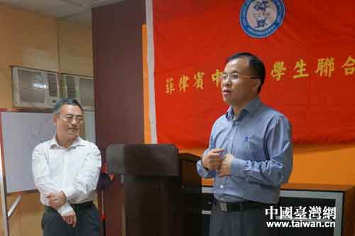 中国台湾网7月15日消息 7月13日,中国驻菲律宾大使馆和菲律宾中国留学生联合会在马尼拉联手举办“领事保护进校园”首场活动,中国驻菲律宾大使馆参赞、总领事沈自成为旅菲中国留学生讲解领事保护知识。来自菲律宾圣托马斯大学、德拉萨大学、雅典耀大学、亚当森大学、吕克昂大学等13所大学中国留学生会代表参加了讲座。部分台湾旅菲留学生也饶有兴趣赶来活动现场咨询海外留学注意事项。