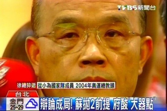 记者:“拒绝4报1社主办,也不准(媒体)现场询问?”民进党主席苏贞昌:“我们很高兴马英九答应说要辩论,既然要辩论就要符合‘国人’期待。”
