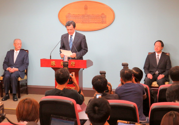 台“总统府”8日下午3时通知媒体,4时马英九将召开记者会,记者会直到4时20分许才正式召开,马英九在吴敦义、江宜桦陪同下出席记者会。马英九当时脸色凝重,嘴唇紧闭,念出手中的逐字稿,没有接受媒体发问就离去,发言人李佳霏也随同离去,没有留下来回应媒体问题。