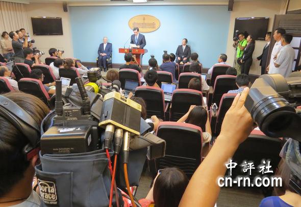 香港“中评社”报道,马英九8日下午亲自召开记者会重炮批评台“立法院长”王金平为民进党“立法院”党团总召柯建铭司法案件,关说“法务部长”曾勇夫及台湾“高检署”检察长陈守煌。马英九逐字念稿、脸色凝重,嘴唇紧闭;陪同出席记者会的吴敦义全程低头皱眉;“行政院长”江宜桦神情严肃。