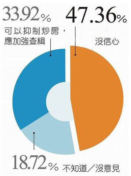 台媒一项最新民调结果显示,有近5成民众对台当局“财政部”取缔炒房之举没信心。