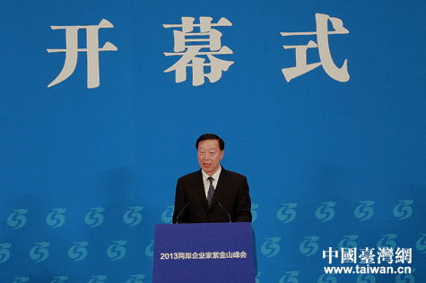 4日下午,2013两岸企业家紫金山峰会在南京拉开帷幕,中共江苏省委书记罗志军出席开幕式并致辞。(中国台湾网 王伟 摄)