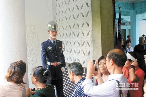 参访团参观慈湖两蒋文化园区卫兵交接仪式。图片来源:台湾《旺报》