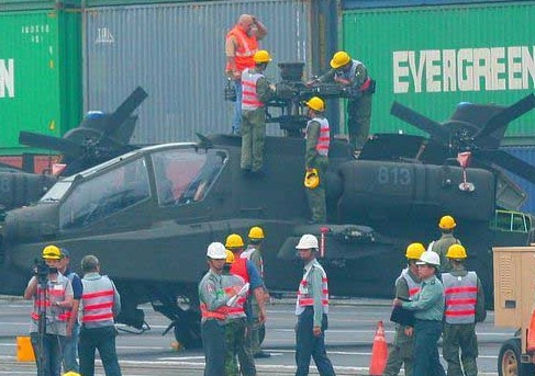 由于台湾向美国采购的30架阿帕契直升机,首批6架已于11月4日清晨抵达高雄港,12月13日上午9时许,马英九是以台军三军统帅身份出席位于台南特航部归仁基地举行的接机典礼。