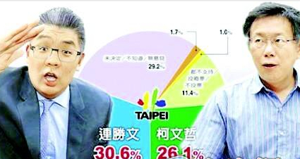 有志参选者,必然承受人格检验之激烈攻防。连胜文被视为“太子党”,“含金汤匙长大”,“不知民间疾苦”,即使同党人士也讥讽,“住在帝宝豪宅怎么做决策”。此前连胜文姊姊连惠心涉入禁药风波被检方调查,顶新魏家所推出的TDR又牵涉连胜文,外界不免揣测,是不是司法又成政争工具,马英九藉由司法威逼连胜文的参选意向?“受不了厨房的热就滚出去”,连胜文能否顶得住一波波掣肘与暗杠,正是考验参选意志的关键。“柯文哲现象”则是政坛的最大惊奇。由于台北市的选民结构一向倾向国民党,除非国民党阵营分裂,否则民进党难以直攻台北市长,陈水扁在1994年当选台北市长正是得渔翁之利。柯文哲医师是政治素人,快人快语,常能点出人民的怨气与心声,不但其民调超越民进党籍有志参选者,甚至与连胜文互有高下,绿营自然寄予厚望,期盼他颠覆台北市选民结构。柯文哲曾表示无意加入民进党,宁愿组成“在野大联盟”,挖取中间或浅蓝选民,是有其谋略考量。