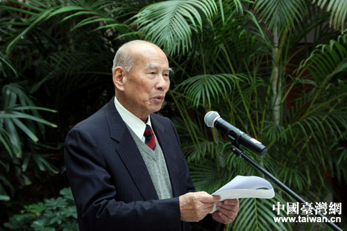 黄埔军校同学会秘书长杭元祥主持茶话会。(中国台湾网 王伟 摄)