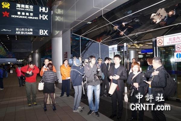 清晨时分,机场外就以有大批媒体守候,等待王郁琦的道来。(中评社 黄文杰摄)