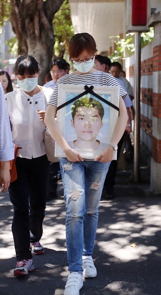 洪仲丘的姐姐抱着弟弟洪仲丘的遗照,难忍不舍。(图片来自台媒)