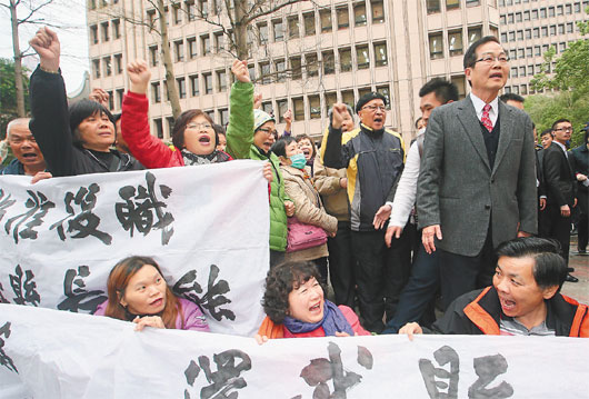 遭停职的台湾南投县长李朝卿(右二)昨日带着支持者前往“内政部”陈情,要求准予复职。来自台湾《联合报》