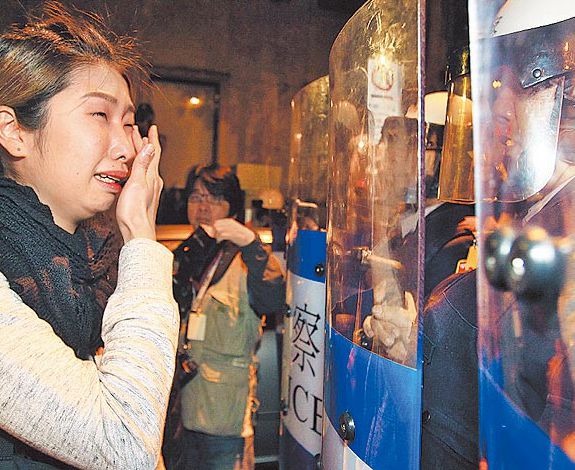 防暴警察驱离下,女学生不禁落泪。来自台媒