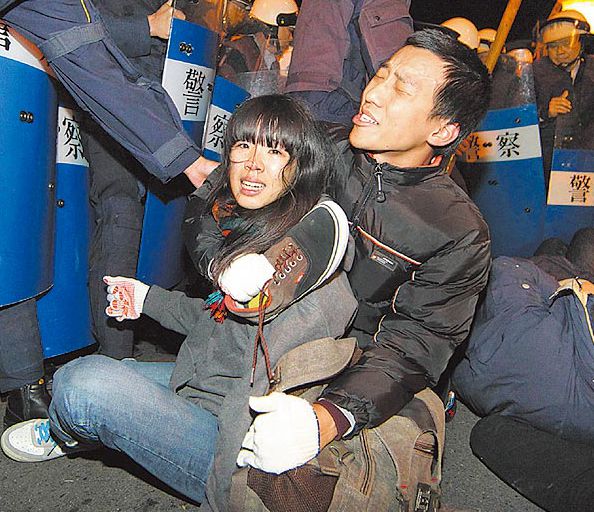 警方以警棍、盾牌强制驱离下,民众头破血流。来自台媒