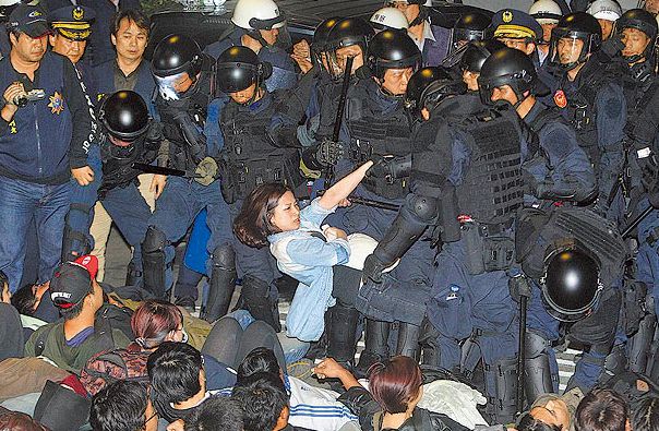警方于执行清场,将静坐民众强制抬离。来自台媒