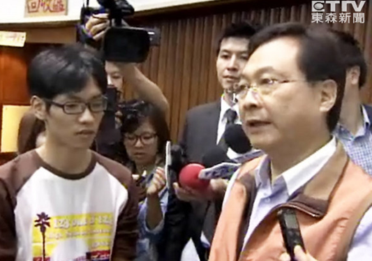 中国台湾网3月25日消息 据台湾“东森新闻”报道,反服贸学生占据“立法院”议场进入第8天出现转圜,马英九25日释出善意,邀请学生代表对谈《两岸服务贸易协议》,学运领袖林飞帆也说,同意不预设立场下和马谈话,官方与学生僵持气氛趋缓,国民党籍“立委”纪国栋下午进入议场,请大家吃棒冰“消消火气”。