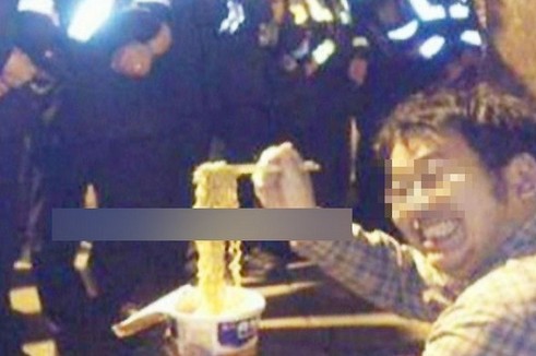 搞笑“暴民”,半夜吃泡面对警挑衅?(台媒图)
