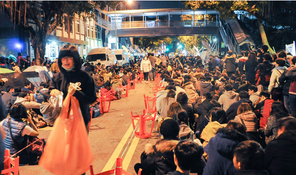 台湾青岛东路与镇江街附近居民的生活,因反服贸学运受到严重影响。(台媒图)