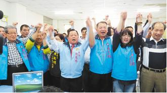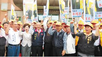 “立委”徐耀昌(前排左三)由支持者簇拥,登记初选。