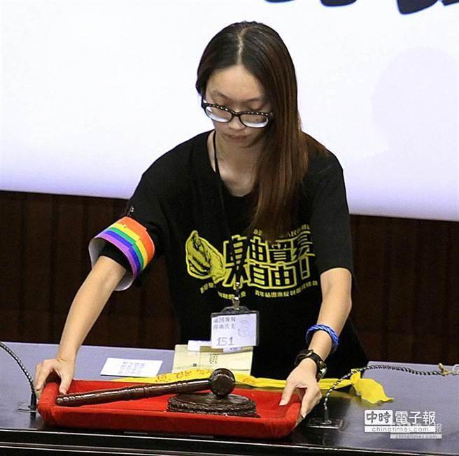 占领“立院”学生将议事槌归还“国会”。 (图片来自台媒)